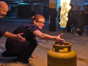 A capacitação é conduzida pela Defesa Civil em parceria com o SAMU (Serviço de Atendimento Móvel de Urgência), promovendo uma abordagem integrada entre prevenção de riscos e atendimento emergencial. Enquanto a Defesa Civil ministra conteúdos sobre princípios de combate a incêndio, o SAMU orienta sobre técnicas de primeiros socorros.
