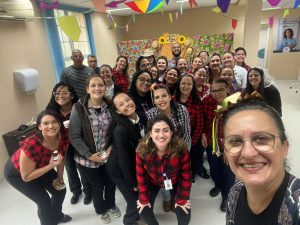 A área de convivência do AME Itu também entrou no clima: ganhou decoração temática com bandeirinhas que levavam imagens dos rostos de todos os colaboradores, criando um ambiente lúdico e afetivo para celebrar não apenas o aniversário, mas também o espírito de equipe.