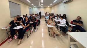 Entre os temas abordados estava a NR-6, que trata do uso correto, conservação e responsabilidade relacionada aos Equipamentos de Proteção Individual (EPIs), com orientações sobre os tipos adequados a cada função. A NR-17, sobre ergonomia, trouxe práticas para melhoria do conforto, adaptação ao posto de trabalho e prevenção de distúrbios osteomusculares, um tema especialmente relevante para profissionais da saúde.