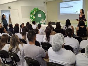 A humanização do cuidado foi destacada por diversos profissionais que compartilharam suas experiências. Marli Alimari, técnica de enfermagem da UTI Neonatal há sete anos, confessou que, ao ingressar na carreira, não desejava trabalhar com crianças, mas foi acolhida pela Neonatologia. “Eu falo que a Neo me escolheu. Acompanhei a Antonella, a Eloá e muitas crianças. Para mim, isso é um presente de Deus”, disse emocionada.